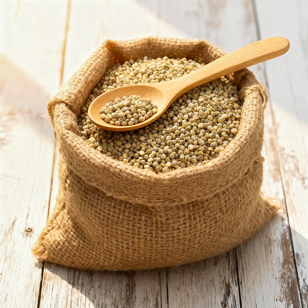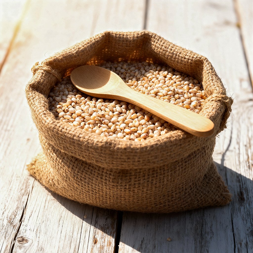 Rich in iron and magnesium, jowar strengthens bones and improves circulation. Its neutral taste and light texture make it suitable for both savory and sweet dishes, including multigrain flours.