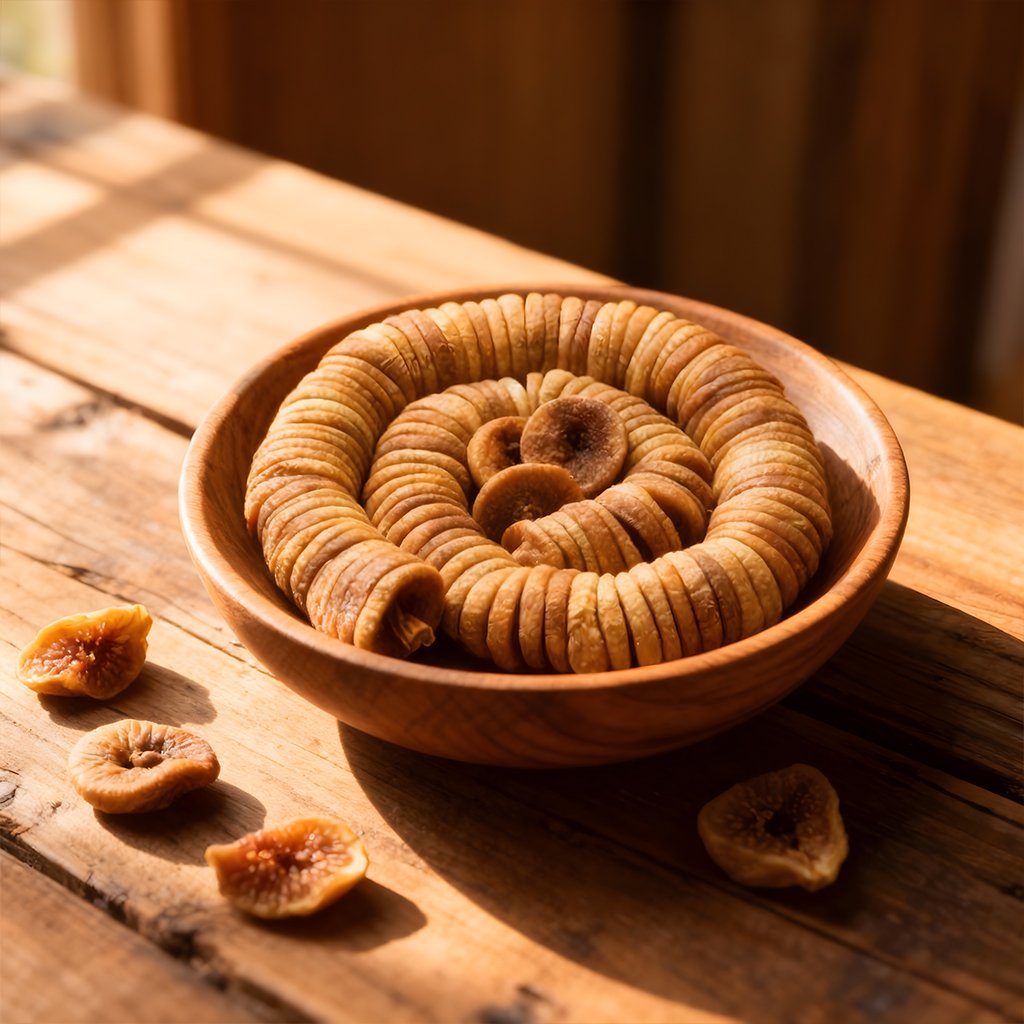 Dried figs are rich in dietary fiber, calcium, and potassium, supporting healthy digestion, bones, and blood pressure regulation.