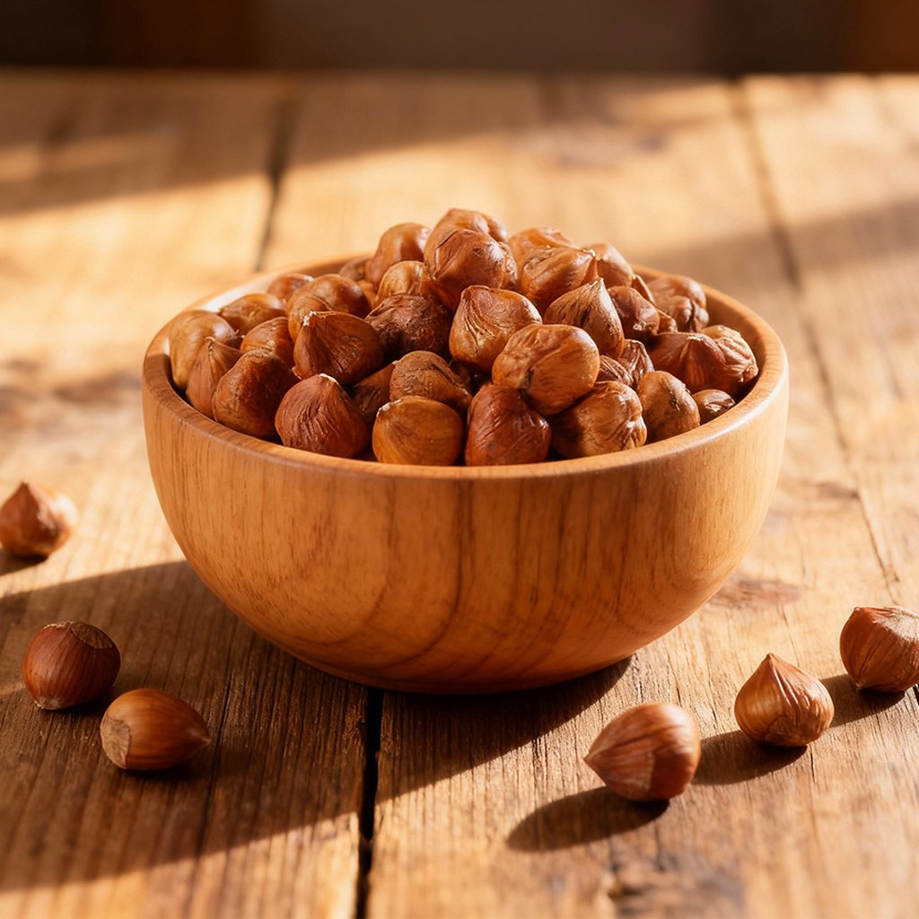 Hazelnuts are packed with vitamin E, folate, and heart-healthy fats, promoting smooth skin, strong muscles, and heart wellness.