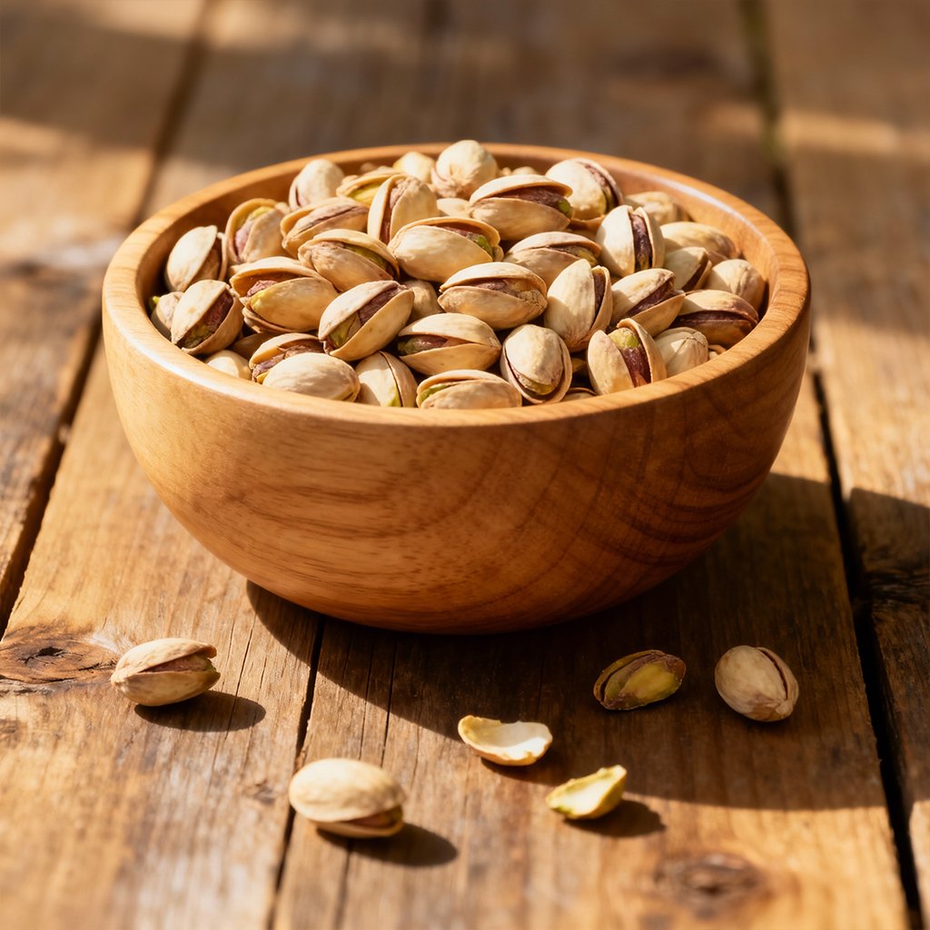 Pistachios are packed with protein, potassium, and heart-healthy fats, known for improving blood pressure and promoting satiety. Their vibrant green hue and nutty flavor elevate any dish.